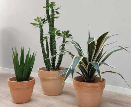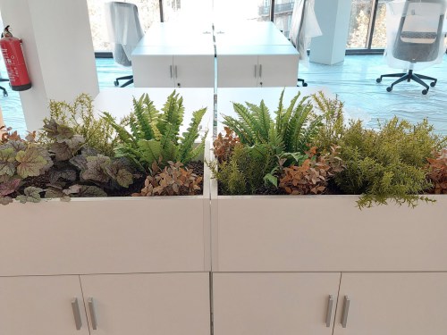 Son plantas fabricadas con materiales sintéticos y que pueden ser una buena solución para lugares donde las plantas naturales no pueden vivir correctamente por falta de luz, espacio o porque las queremos colocar en lugares de dificil acceso.